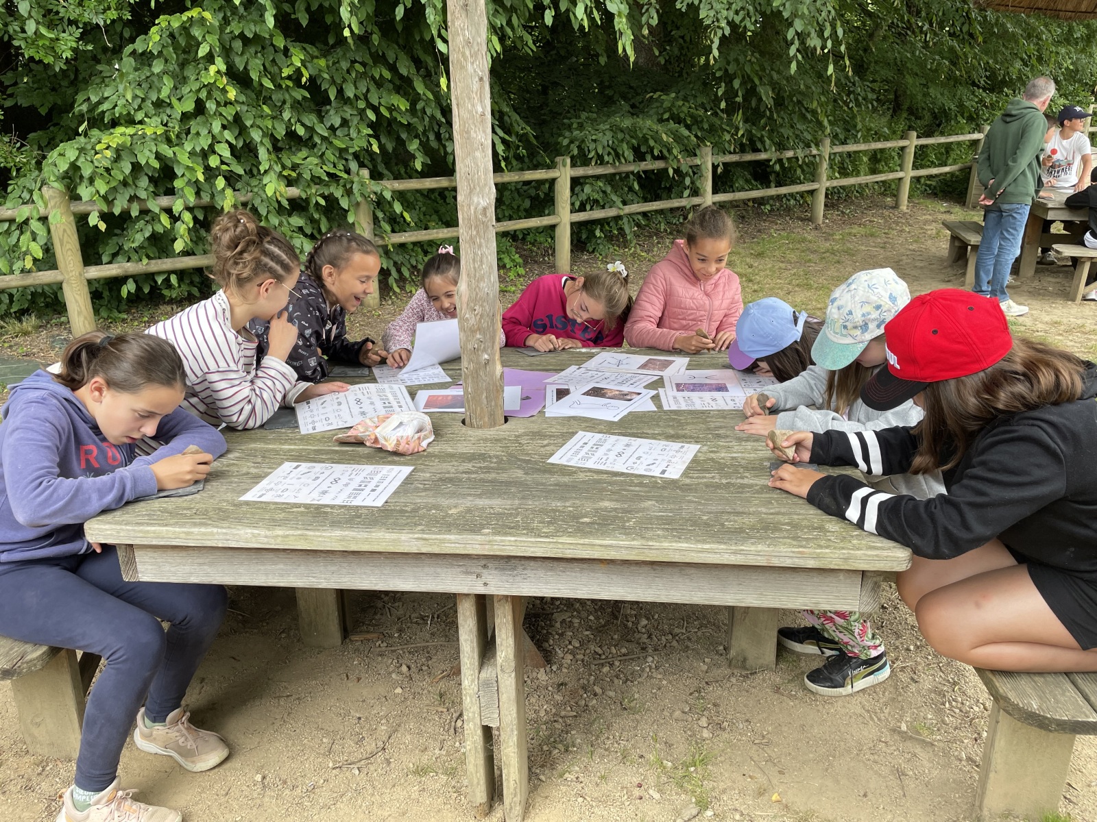 Lundi 2 juin : sortie au CAIRN avec toute l’école. Au programme découverte du parc avec observation de différents lieux, objets et mode de vie des hommes préhistoriques. Puis nous avons visité le musée. Ensuite nous avons fait un atelier de gravure et enfin nous avons eu une démonstration du feu
