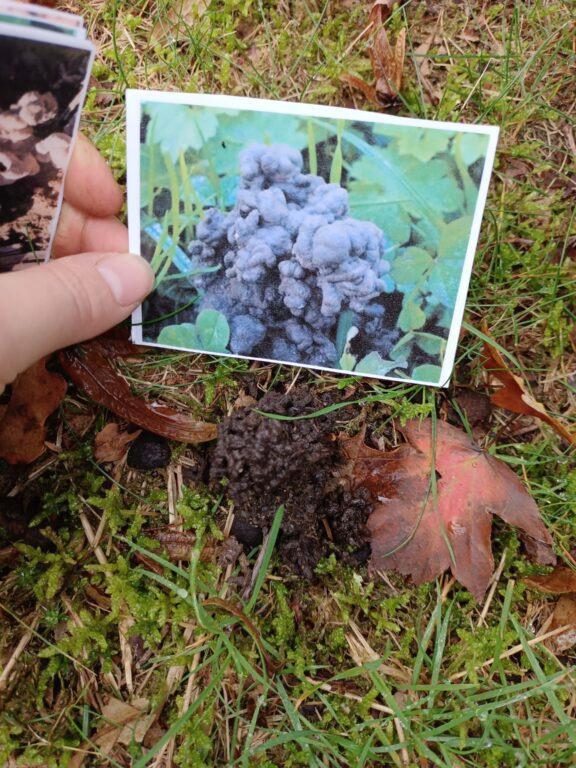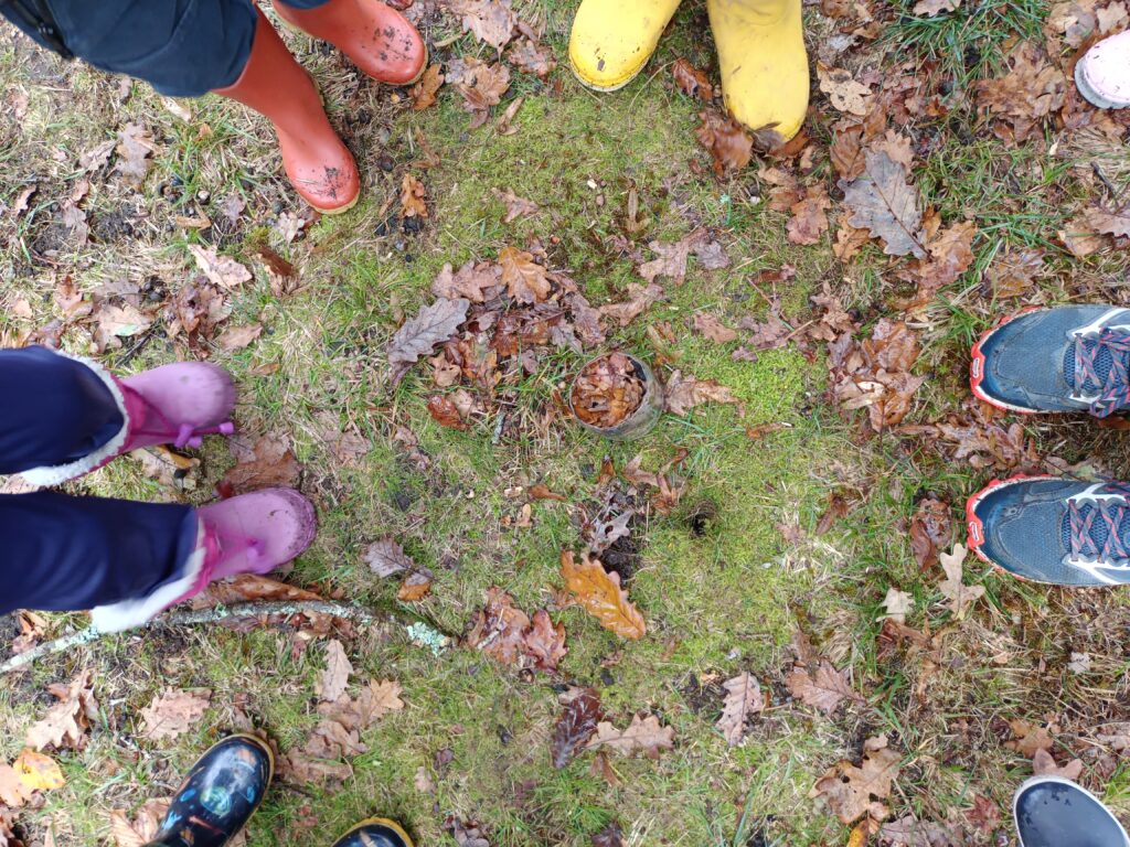 Recherche et observation des turricules de vers de terre (les cacas de vers de terre). Après les avoir trouvés, il faut sauter autour pour faire remonter les vers de terre à la surface !