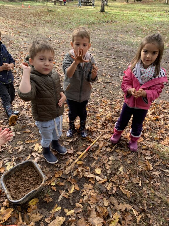 Bac sensoriel : les enfants ont à leur disposition une assiette de terre et un petit peu d’eau. Ils font l’expérimentation de cette matière comme ils le souhaitent. Ils peuvent peindre, faire des petites sculptures ou autre…