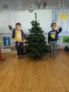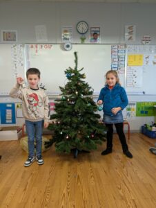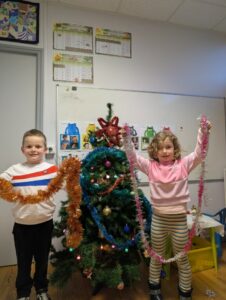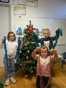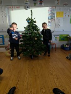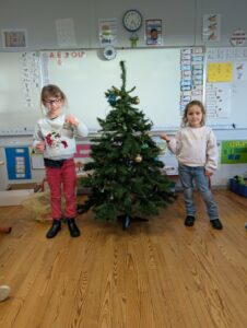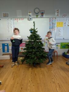 Afin de préparer Noël, nous avons décoré le sapin. Tout le monde a participé en mettant la décoration de son choix.