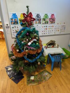 Le matin de la rentrée, nous avons découvert des cadeaux au pied du sapin. Avant de partir en vacances, les GS avaient écrit une lettre au Père Noël. Il a bien reçu notre lettre et il nous a répondu. En plus, il nous a offert un livre chacun en cadeau.